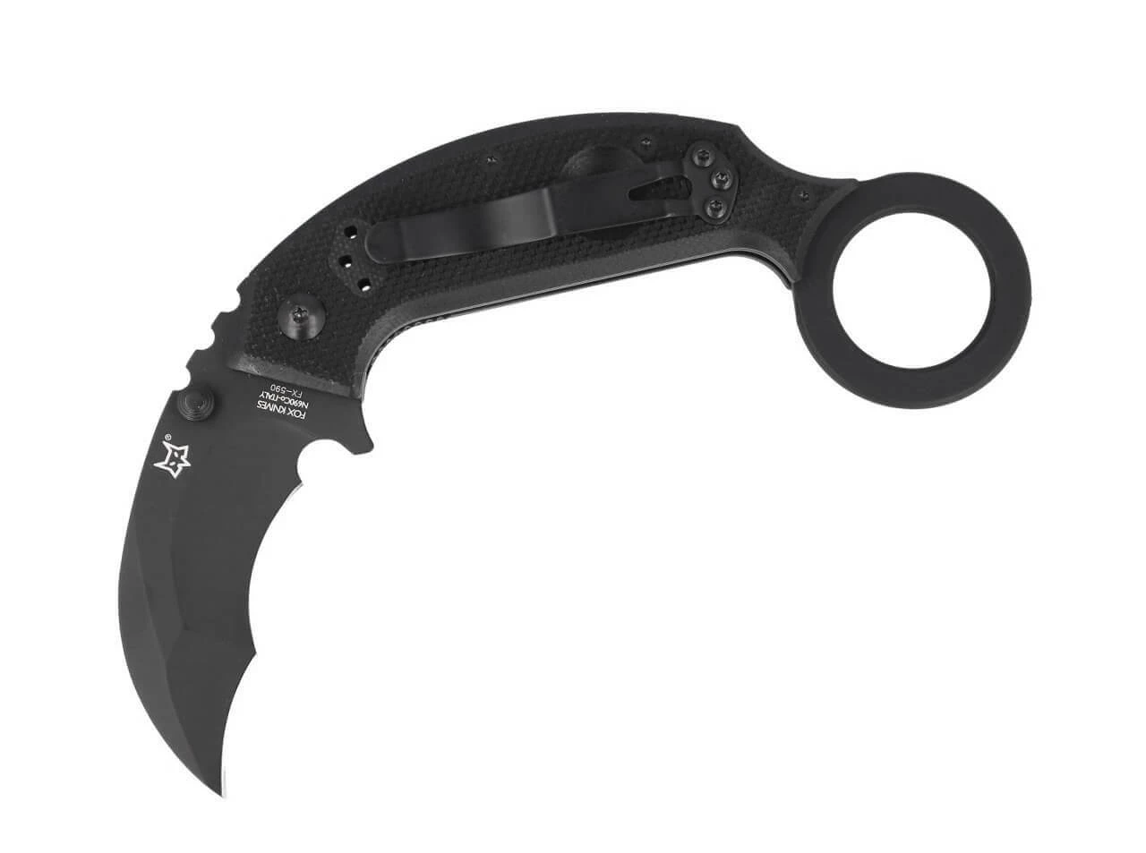 Das FKMD Chiroptera Karambit wurde von Rick Derespina entworfen. Es verfügt über eine schwarze Hawkbill-Klinge aus N690 und einen strukturierten schwarzen G10-Griff. Der beidseitige Daumenpin erleichtert die einfache Öffnung. Mit vierfach umsetzbarem Clip.