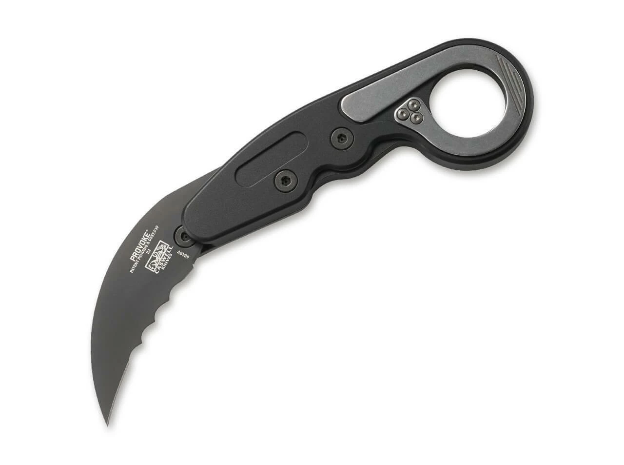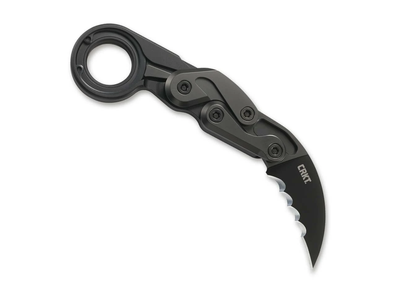 Eine ganz neue Dimension von Klappmesser stellt das CRKT Provoke von Joe Caswell dar, dessen Kinematic genannter Mechanismus mit dem keines anderen Taschenmessers vergleichbar ist. Die auf zwei beweglichen Armen gelagerte Hawkbill-Klinge dreht sich nicht klassisch um eine Achse, sondern wird vom Griff parallel nach vorne herausgeschwenkt und verriegelt. Die Verriegelung des Kerambits wird mit dem in Griff eingelassenen Hebel wieder gelöst. Die Bedienung ist so unkompliziert und intuitiv, dass stets ein sicheres und schnelles Handling gewährleistet ist.