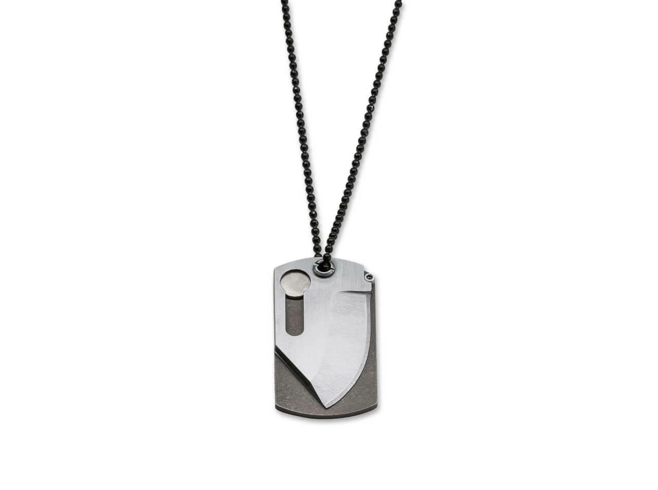 Für maximale Sicherheit beim Tragen und beim Nutzen trägt der einseitige Chisel Grind der Klinge bei, der die flache Rückseite der Schneide engstmöglich an der Titanplatine anliegen lässt. Zudem sichert ein durchdachter Magnetmechanismus das Neck Knife sowohl in geschlossenem wie auch in geöffnetem Zustand. Die Verriegelung basiert dabei nicht auf reiner Magnetkraft, sondern auf einer echten Arretierung. So ist ein versehentliches Öffnen auch bei sportlich-dynamischer Aktivität ausgeschlossen. Die Rückseite der Titanplatine eignet sich perfekt für eine Lasergravur des Namens, Spitznamens oder auch von medizinischen Daten und anderen Informationen. Mit schwarzer Kugelkette.