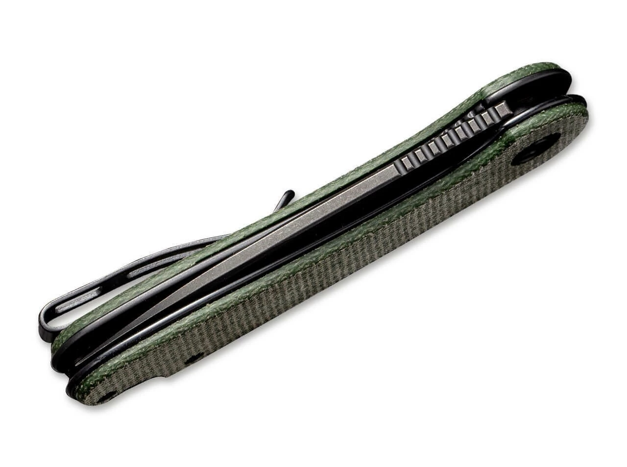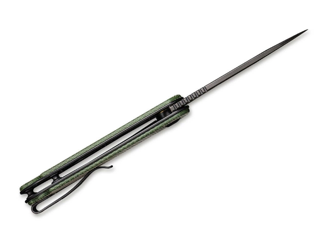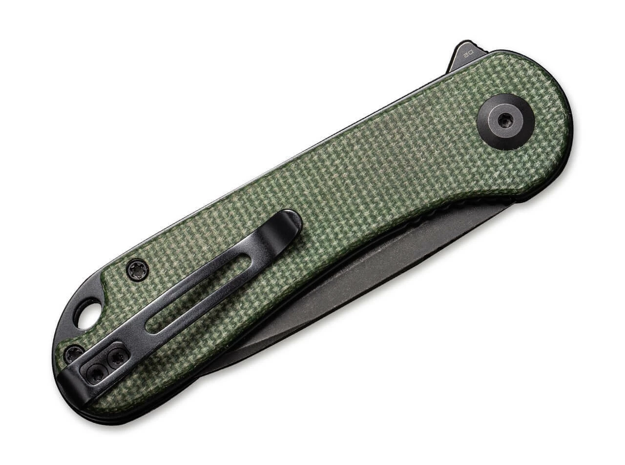 Das schlichte Elementum von CIVIVI ist mit Griffschalen aus grünem Micarta und einer Tanto Klinge aus korrosionsbeständigem D2 ausgestattet. Das robuste Auftreten, die Zuverlässigkeit und nicht zuletzt das ausgezeichnete Preis-Leistungs-Verhältnis machen das Elementum zu einer ausgezeichneten Wahl für den Alltag. Die Klinge lässt sich dank des Flippers unkompliziert öffnen und verriegelt per Linerlock. Mit Deep-Carry-Clip und Fangriemenöse (Tip-down).