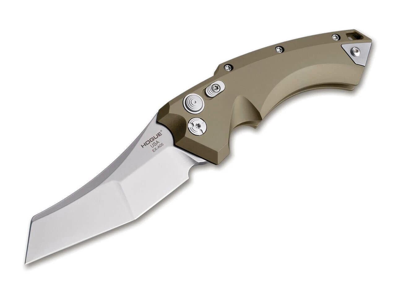 Das von Hogue gefertigte EX-A05 überzeugt als taktisches Einsatzmesser besonders durch die stabile Konstruktion und seine geschwungene Form. Die zusätzliche Schiebesicherung erhöht die Sicherheit deutlich. Die Griffschalen bestehen aus Aluminium, die Wharncliffe-Klinge wird aus 154CM gefertigt. Mit Clip (Tip-down).