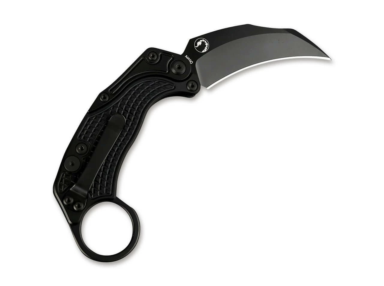 Exoskelett, Gravitation und ein futuristisches Design – was nach Zutaten für einen Science-Fiction Film klingt, macht Reate mit dem EXO-K wahrhaftig und greifbar. Das Karambit verzichtet auf gängige Öffnungshilfen und setzt allein auf die Schwerkraft sowie die Stützstruktur des schwarzen Aluminiumgriffs. Durch einen beherzten Schwung öffnet der vordere Teil des Griffs und legt den Doppelgelenkmechanismus des Messers frei. Der anschließende Rückschwung bringt die Klinge in Position, so dass der Griff von der Hand umschlossen wird und die sichelartige Klinge aus N690 an Ort und Stelle hält. Zur Entriegelung wird kommt der bewährte Button Lock zum Einsatz. Die Machart des Taschenmessers steht für einen hohen Alltagsnutzen und garantiert eine lange Lebensdauer. Abgerundet wird das schwerelose Design durch das Stonewash-Klingenfinish, dem Titanclip (Tip-Up/r) sowie dem Kerambit-typischen Ring am Griffende.