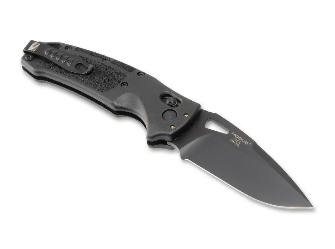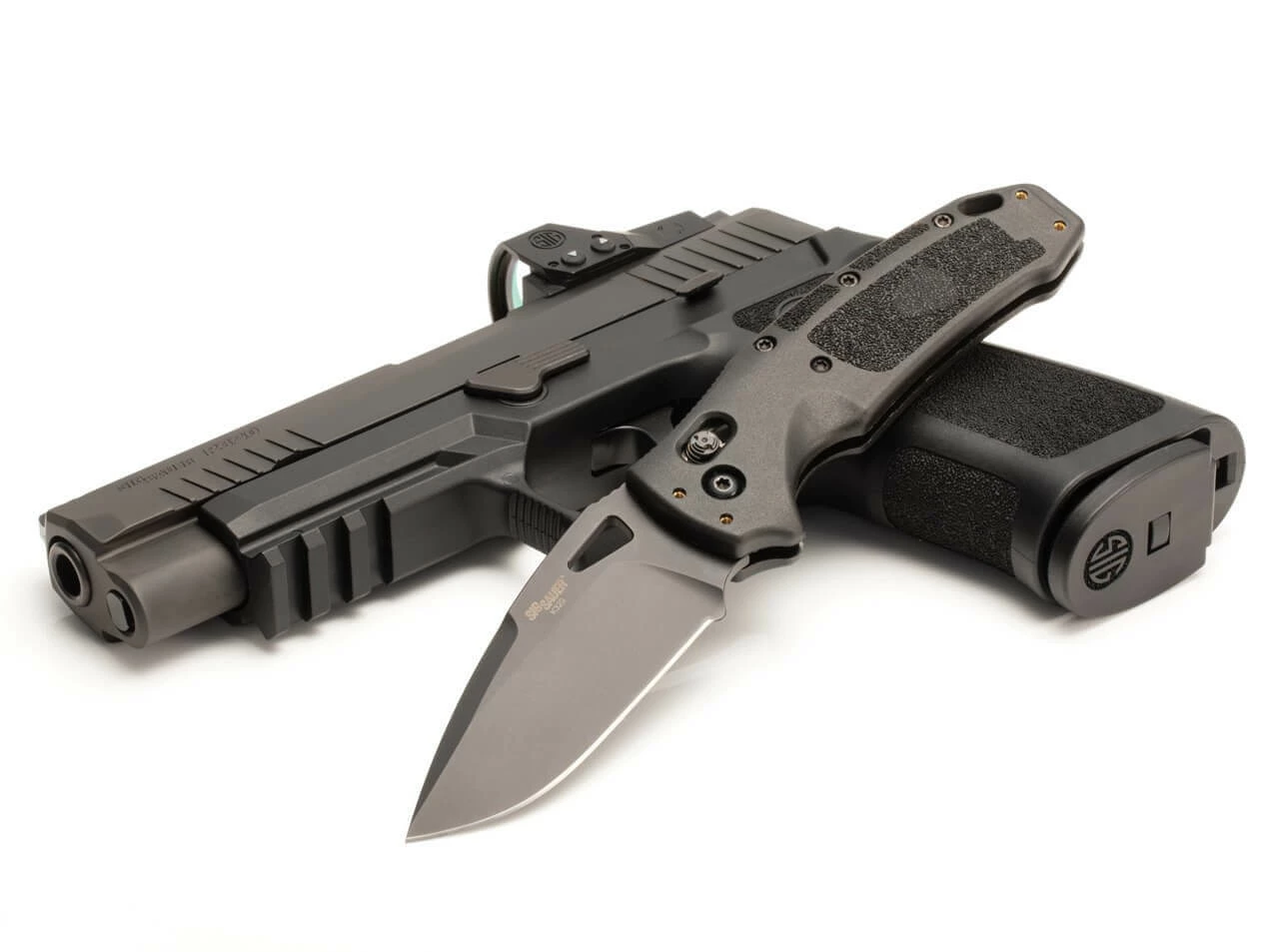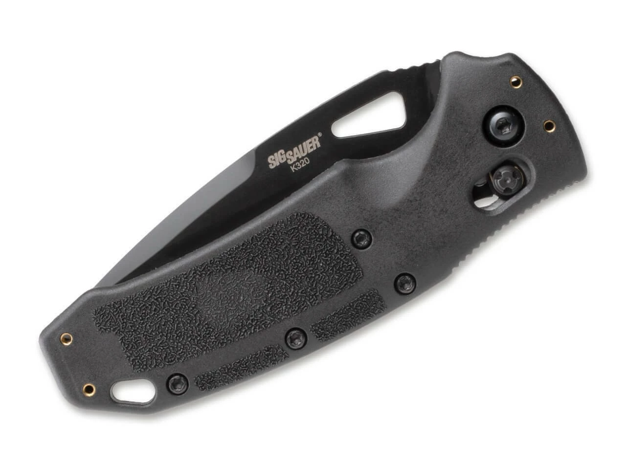 Das von Hogue in Lizenz für SIG Sauer gefertigte K320 Nitron vereint eidgenössische Präzision mit amerikanischem Militär-Knowhow. Die Droppoint-Klinge des taktischen Taschenmessers besteht aus pulvermetallurgischem CPM-S-30V und ist mit einer schwarzen PVD-Beschichtung versehen. Das Messer öffnet leichtgängig per Daumenöffnung, während der texturierte Griff aus Polymer sicher in der Hand liegt. Der patentierte ABLE Lock sichert die Klinge auch bei schwierigen Arbeiten zuverlässig. Mit Fangriemenöse und vierfach umsetzbarem Clip.