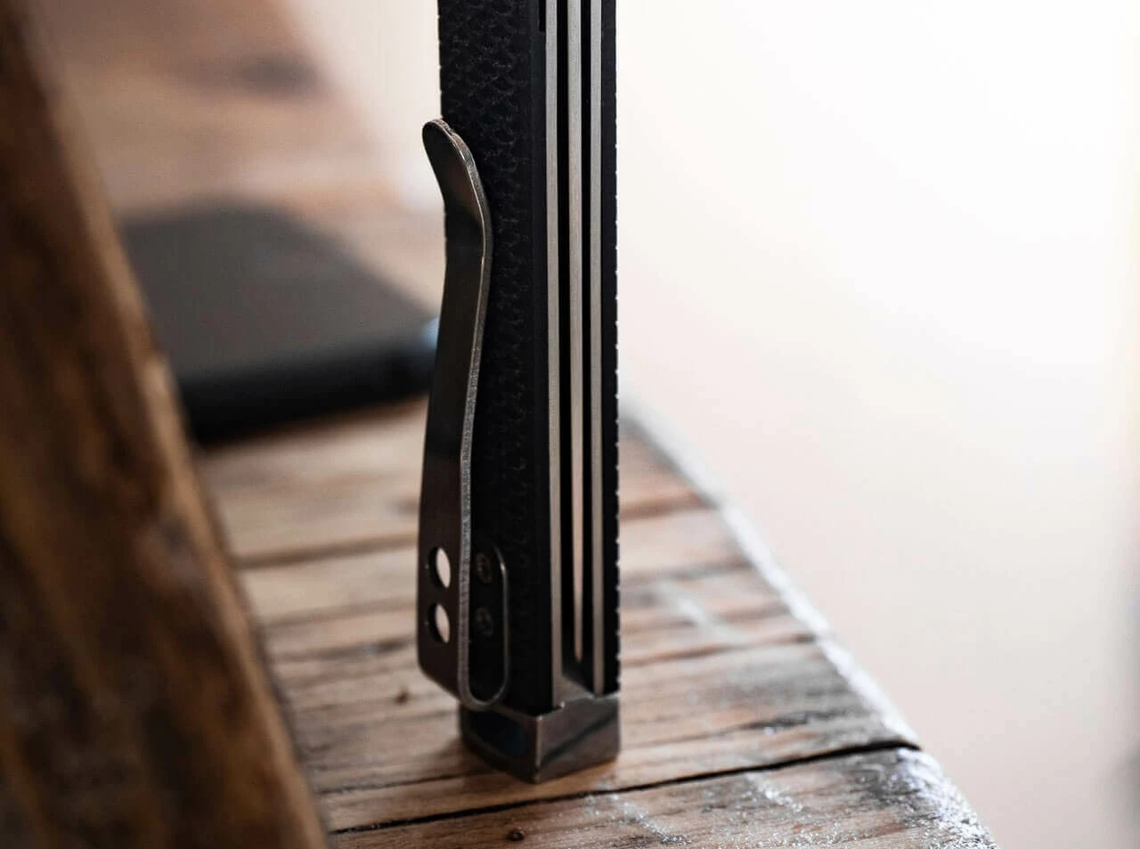 Bescheidenheit als Zeichen wahrer Größe wird vom minimalistisch gehaltenen Flipper perfekt verkörpert, der optisch mit dem schlanken Messer nahezu verschmilzt und durch die Riffelung dennoch hochfunktionell ist. Die kugelgelagerte Klinge aus satiniertem D2 arbeitet sich mit stoischer Ruhe durch die Schneidarbeiten des Alltags und findet mithilfe der zuverlässigen Linerlock-Verriegelung stets zurück zu ihrer Mitte. Die dekorative Klingenachsschraube ist das optische Ausgangszentrum des Gentleman-Folders als Sinnbild der Veränderung in Form und Funktion und mündet in der geradlinigen Fangriemenöse am Griffende. Der texturierte Griff aus rutschfestem G10 liegt angenehm in der Hand und ist mit einem praktischen Clip (Tip-up/r) versehen. Mit hochwertigem Nylon-Etui zur Aufbewahrung.