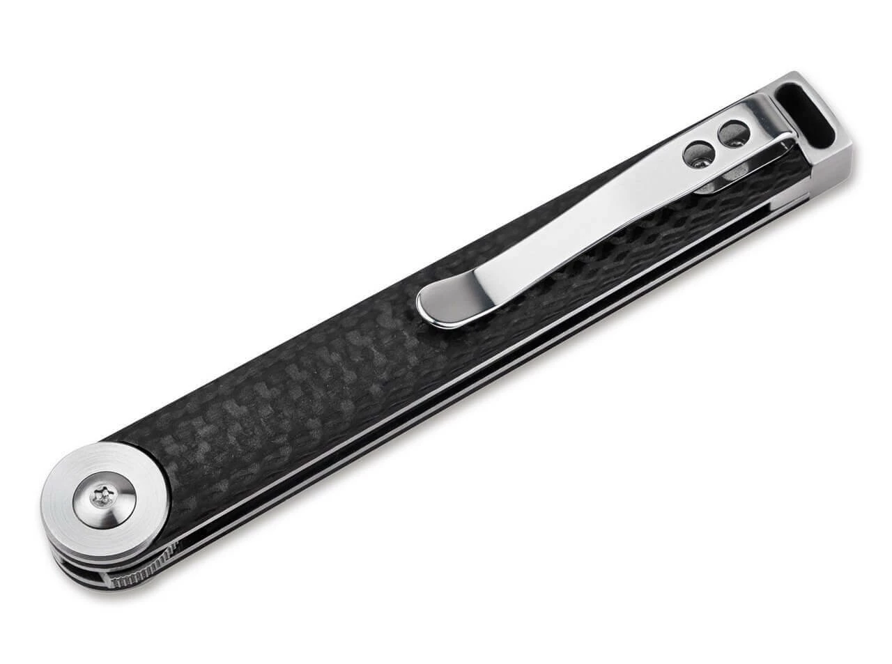 Die kugelgelagerte Klinge aus satiniertem CPM-S- 35VN arbeitet sich mit stoischer Ruhe durch die Schneidarbeiten des Alltags und findet mithilfe der zuverlässigen Linerlock-Verriegelung stets zurück zu ihrer Mitte. Die dekorative Klingenachsschraube ist das optische Ausgangszentrum des Gentleman-Folders als Sinnbild der Veränderung in Form und Funktion und mündet in der geradlinigen Fangriemenöse am Griffende. Der stilvolle Griff aus moderner Kohlefaser liegt angenehm in der Hand und ist mit einem praktischen Clip (Tip-up/r) versehen. Mit hochwertigem Nylon-Etui zur Aufbewahrung.