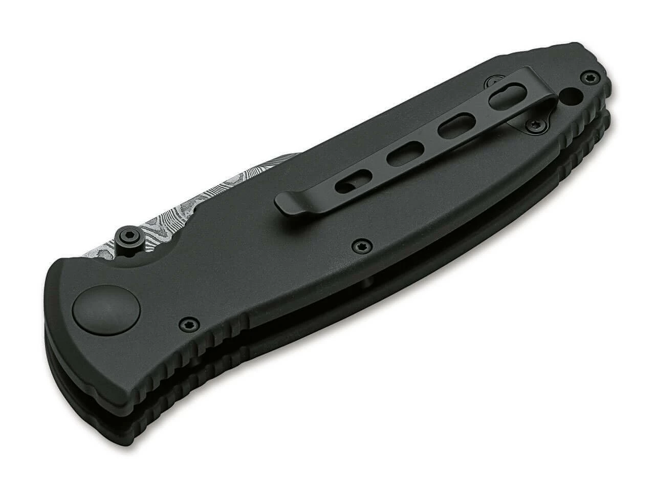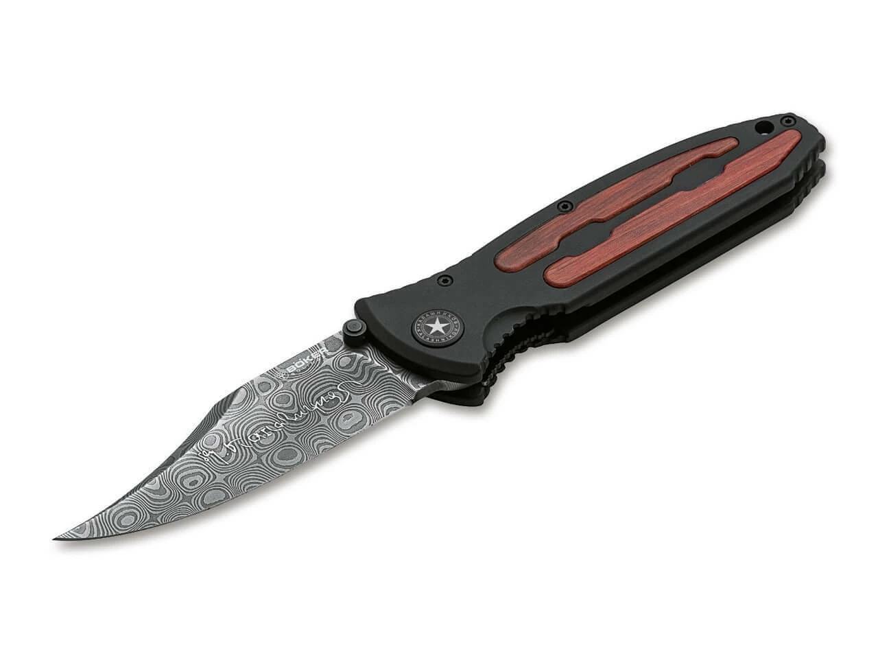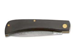 Der Griff wird aus einem Block 6061-T6 Aluminium CNC-gefräst und anschließend schwarz hardcoat-anodisiert. Die stabilisierten Einlagen bestehen aus heimischem Hainbuchenholz, erinnern an das Schaftholz des berühmten Sturmgewehrs und bilden zusammen die Form der charakteristischen Lüftungsschlitze des Vorderschafts. Der Farbton Russian Amber Shellac der Originalschäfte wurde dabei genau getroffen. Sie werden ebenfalls per CNC-Technik aus dem Vollen gefräst und per Hand eingelegt. Sämtliche Schrauben und der Clip (Tip-up/r) sind ebenfalls schwarz anodisiert. Handgefertigt in der Böker Messer-Manufaktur Solingen. Auslieferung mit edlem Schwebedisplay, Echtheitszertifikat und individueller Seriennummer.