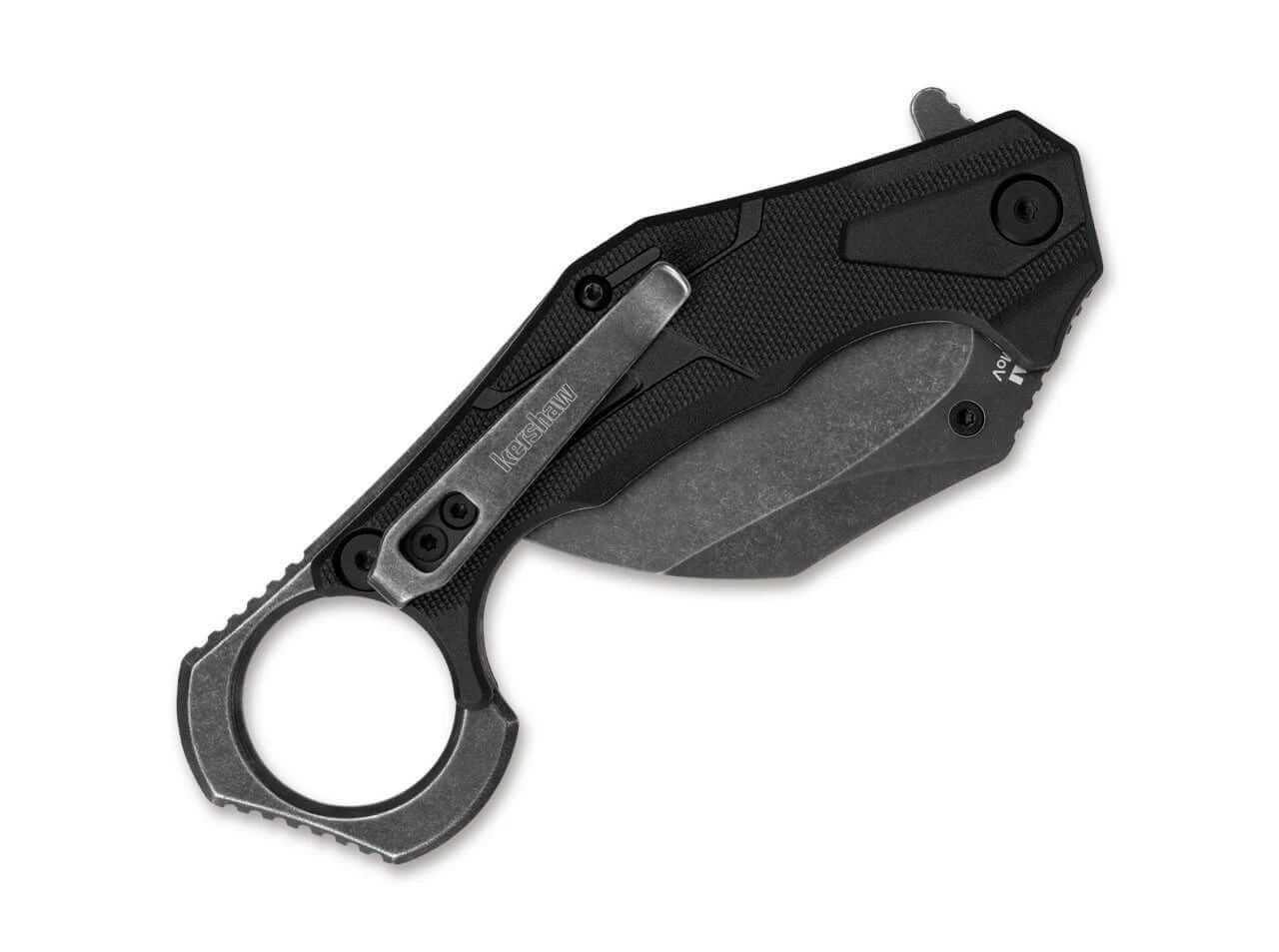 Taktisch und praktisch – so lässt sich der von Tatendrang geprägte Charakter des Kershaw Outlier kurz und knapp zusammenfassen. Das komplett schwarze Karambit Messer öffnet federunterstützt per Daumenpin und wird durch den robusten Liner Lock gehalten. Die aggressive Hawkbill-Klinge eignet sich ideal zum Zerschneiden von Kartons oder Seilen. Der Griff aus GRN liegt dank seiner texturierten Oberfläche sicher in der Hand, während der charakteristische Edelstahl-Ring am Griffende zahlreiche Grifftechniken erlaubt.