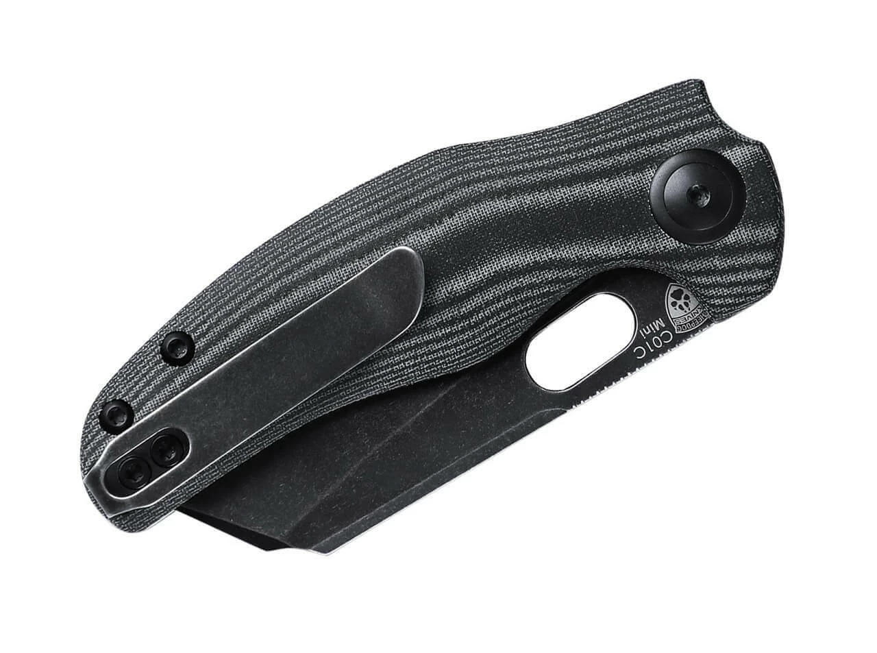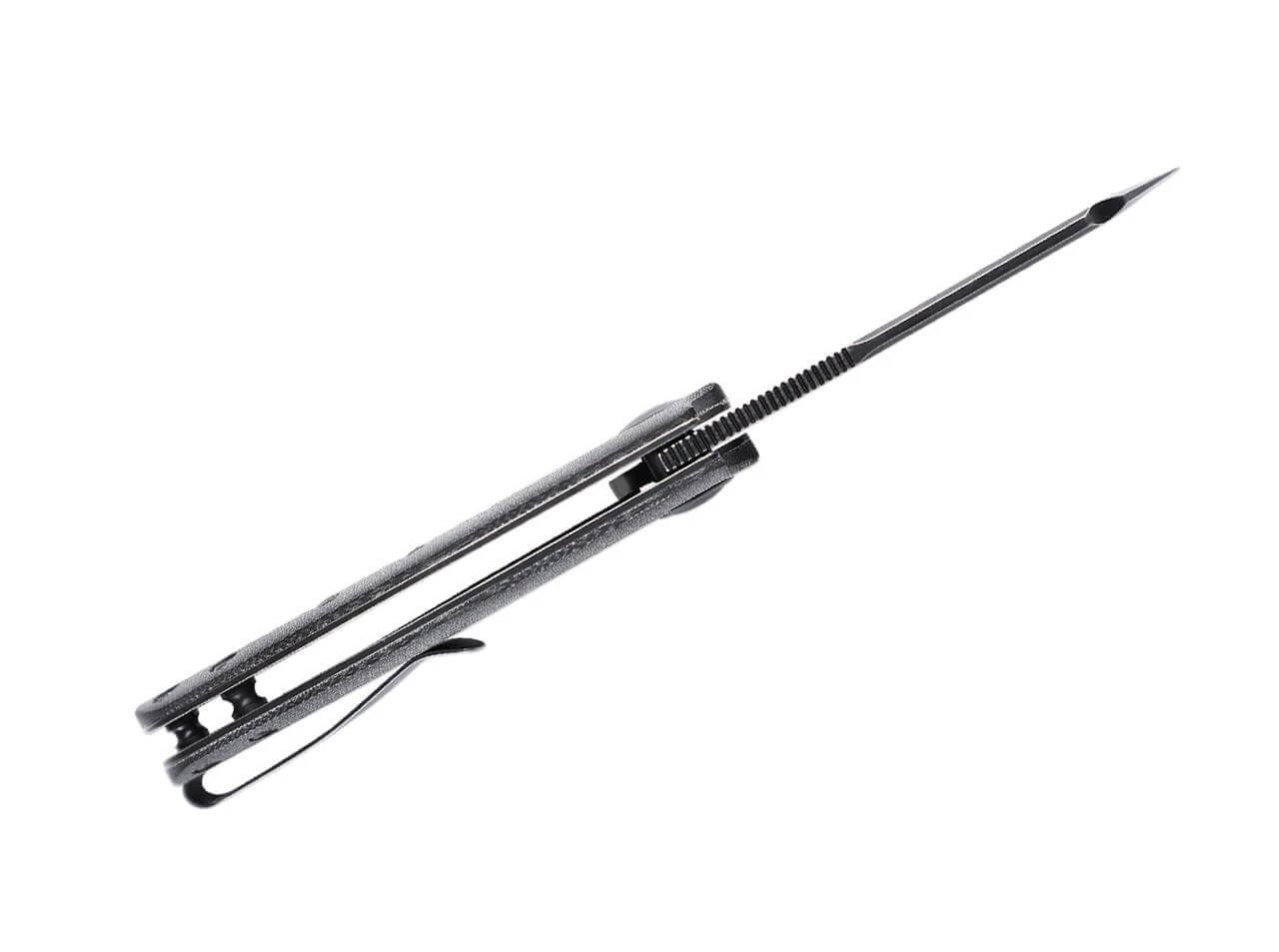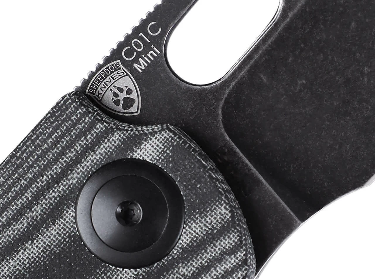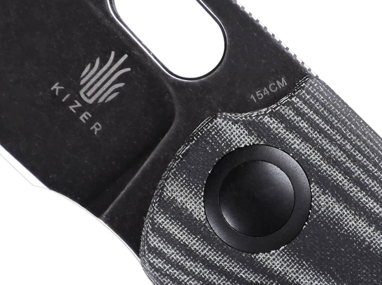 Die Mini Sheepdog Familie von Kizer erfeut sich seit jeher großer Beliebtheit und entzückt die EDC Gemeinde mit immer wieder neuen Facetten. Diese Variante überzeugt mit schwarzer Klinge aus 154CM und einem grau melierten Micartagriff. Geöffnet wird das Messer per Daumenöffnung, während der Slipjoint Mechanismus die Klinge zuverlässig hält. Mit Clip (Tip-Up/r).