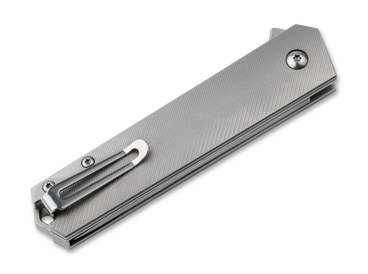 Der Böker Plus Kwaiken Flipper von Lucas Burnley ist wahrscheinlich einer der einflussreichsten Entwürfe des 21. Jahrhunderts. Mit seiner klaren und praktischen Form ist das moderne Taschenmesser mittlerweile zu einer wahren Ikone geworden. Die sauberen Linien und das schlanke Design, das in geschlossenem Zustand dennoch die komplette Klinge aufnimmt, sind absolut einzigartig. Es ist die Weiterentwicklung des bekannten Burnley Kwaiken Classic, einem ebenfalls im neo-japanischem Stil gehaltenem Fahrtenmesser. Die intuitive Bedienung rückt bei dieser Push Button Variante ganz besonders in den Fokus, denn die kugelgelagerte Klinge aus pulvermetallurgischem CPM-S-35VN öffnet reaktionsfreudig per Flipper und entriegelt mit nur einem Druck auf den Knopf an der vorderen Griffschale. Spieltrieb abstellen? Ausgeschlossen! Unterstrichen wird der edle Anspruch durch die Beschalung aus diagonal texturiertem Titan, die dem Messer eine ganz besondere Anmutung verleiht. Die schlanke Bauart und das exklusive Material machen das Kwaiken zu einem edlen Crossover zwischen Gentleman-Folder und taktischem Einsatzmesser. Mit Clip (Tip-up/r), Fangriemenöse und hochwertigem Etui zur Aufbewahrung.