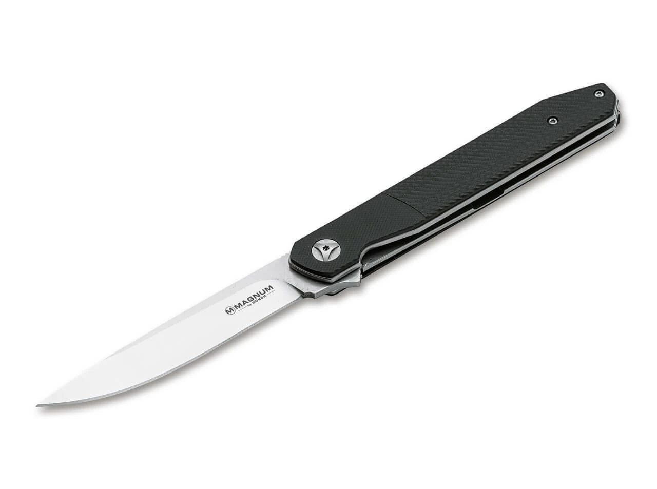 Der japanische weibliche Vorname Miyu bedeutet übersetzt „Überlegener Geist“. Diesem Namen macht das Magnum Miyu alle Ehre. Die schlichte und elegante Linienführung steht ganz in der von Perfektion und Ästhetik geprägten Kultur der Samurai der Edo-Periode. Überlegene Materialien wie rostfreier 440A, konturiert gefräste G10-Schalen und skelettierte Edelstahlplatinen sprechen für sich. Hinzu kommt ein subtiles Duo-Tone-Finish der Klinge aus Satin und Stonewash. Die Klinge öffnet per Flipper und verriegelt sauber über einen Linerlock. Das Miyu ist die ausgewachsene Variante und erste Wahl für alle, die sich im Steakhouse nicht mehr regelmäßig über stumpfe Tafelmesser ärgern möchten. Der hoch montierte Clip ermöglicht eine tiefe Trageweise in der Tip-up-Position.