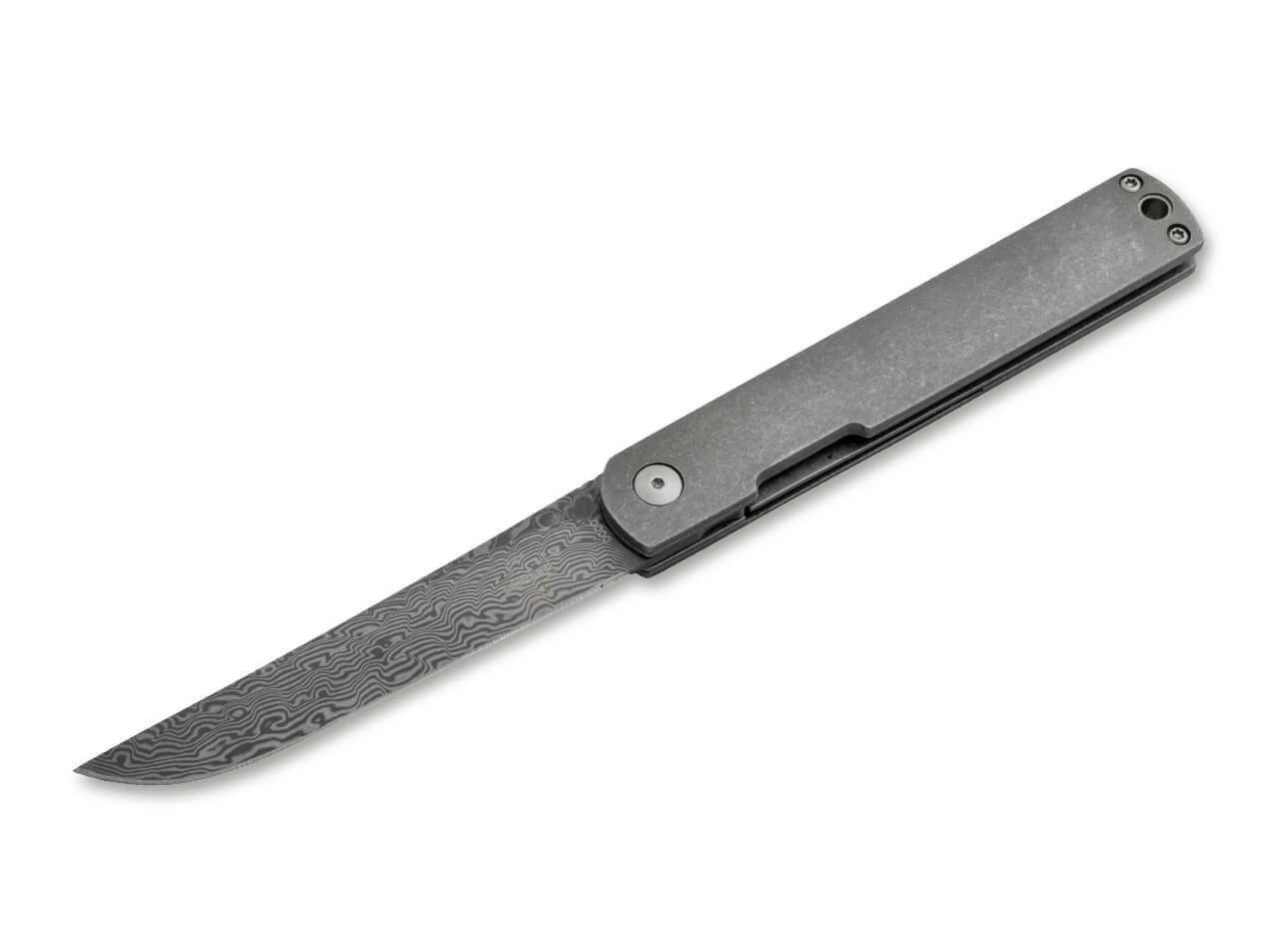Das Böker Plus Nori ist ein weiteres elegantes Gentlemanmesser des japanischen Messermachers Kansei Matsuno, das nun auch in einer besonders edlen Sammlerversion erhältlich ist. Die schlanke Bauweise und die leichtgewichtige Konstruktion des Wasabi wurden hier mit dem überaus praktischen Frontflipper und dem stabilen Linerlock des LRF kombiniert. Die kugelgelagerte Klinge aus rostfreiem Damast besteht aus 110 Lagen, die Griffschalen werden aus hochfestem Titan gefertigt und sitzen auf Titanplatinen. Das geradlinige Design und die klassisch-japanische Klinge machen das Nori zu einem idealen Begleiter für den Alltag. Mit verstärkter Fangriemenöse, praktischem Deep-Carry-Clip (Tip-up/r), der ebenfalls aus Titan gefertigt wird, und hochwertigem Nylon-Etui zur Aufbewahrung.