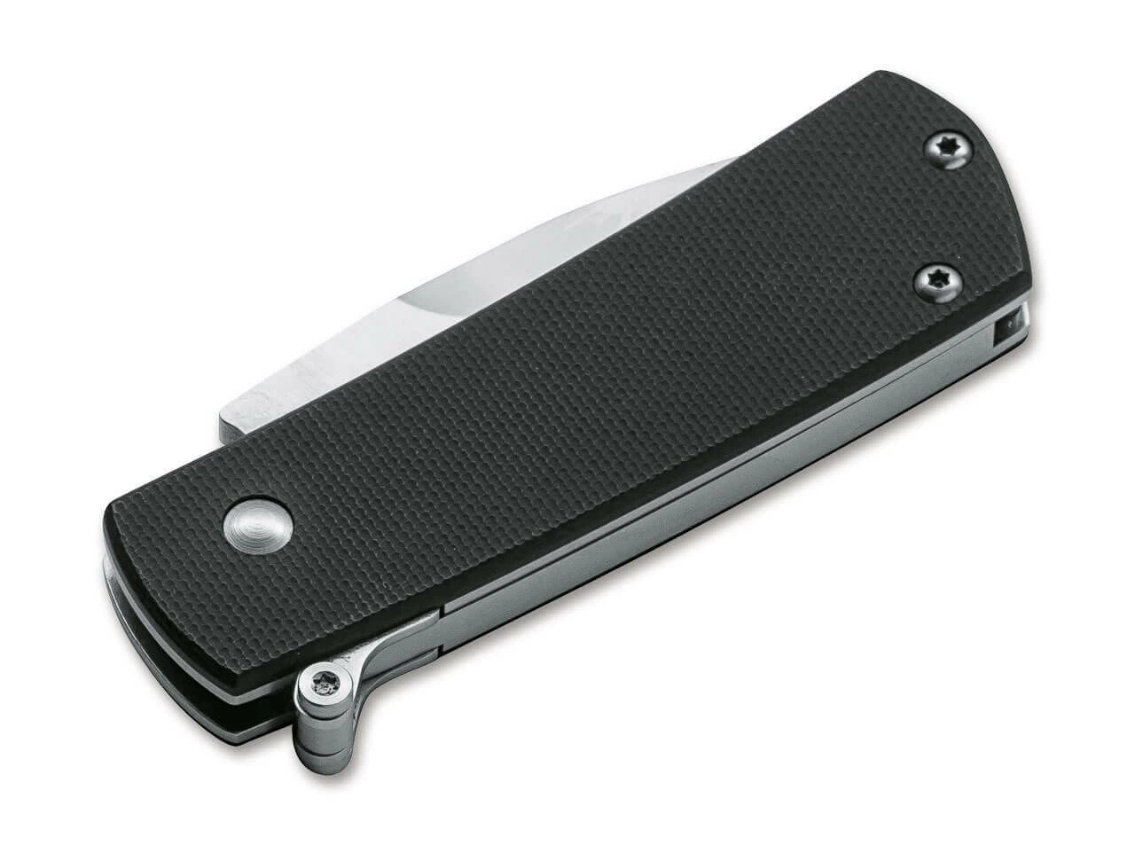 Darriel Caston und Stan Mojzis haben mit dem Böker Plus Shamsher ein minimalistisches Automatikmesser entworfen, das mit einer Gesamtlänge von knapp 12 Zentimetern sicherlich zu den handlichsten Vertretern seiner Art zählt. Die satinierte Klinge aus D2 wird durch das Betätigen des an einen klassischen Flipper erinnernden Auslösers automatisch per Federkraft geöffnet und von einem Linerlock sicher verriegelt. Die flachen Griffschalen bestehen aus texturiertem G10. Mit kleiner integrierter Fangriemenöse und hochwertigem Nylon-Etui zur Aufbewahrung.