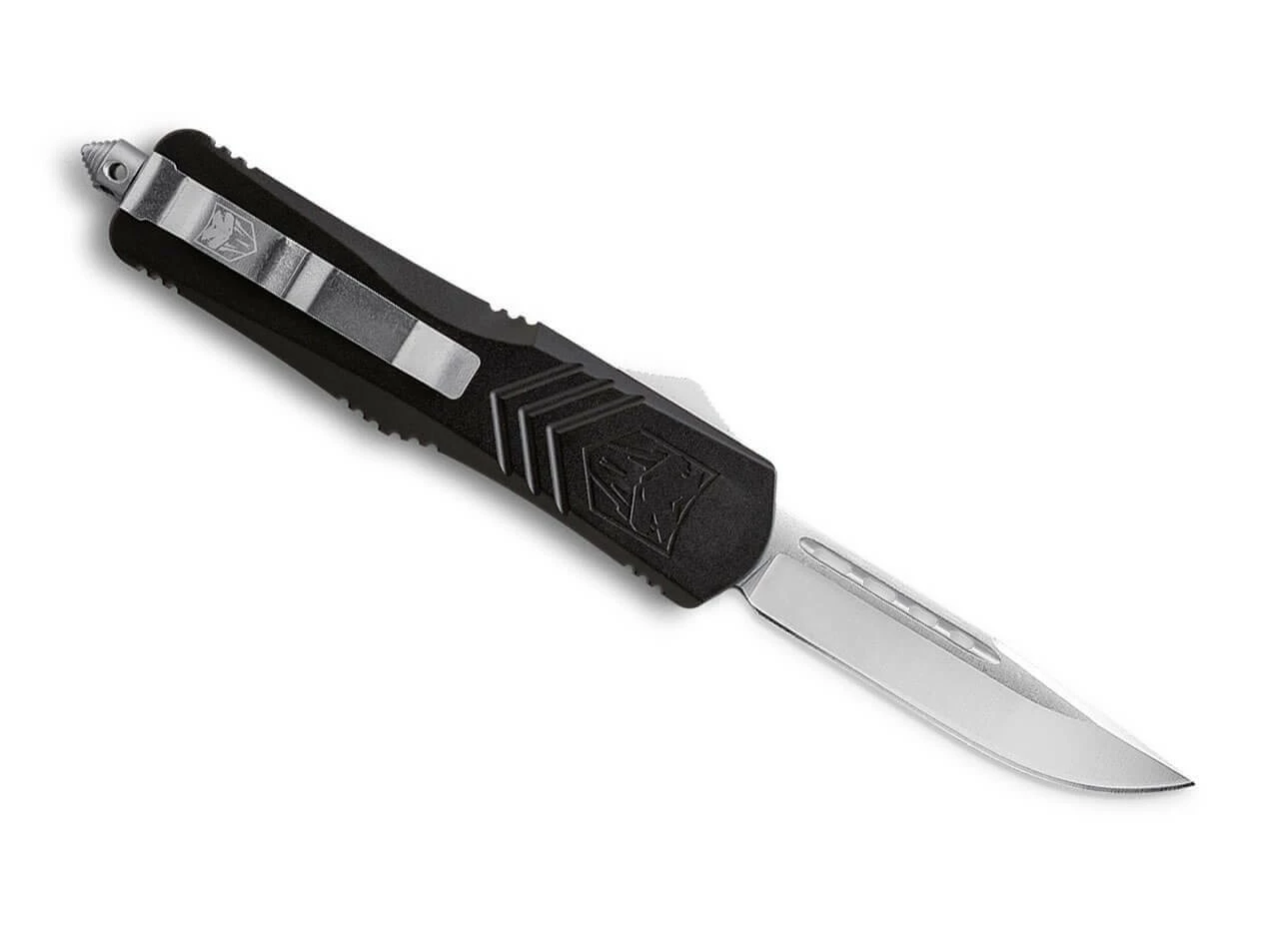 Das kompakte CobraTec Small FS-X OTF Black überzeugt mit seiner Klinge aus D2 und dem rutschfesten Griff aus Aluminium. Die Klinge kommt via Knopfdruck automatisch aus dem vorderen Griffstück (out the front) heraus. Mit Nylon Etui, Glasbrecher und Clip (Tip-down/r).