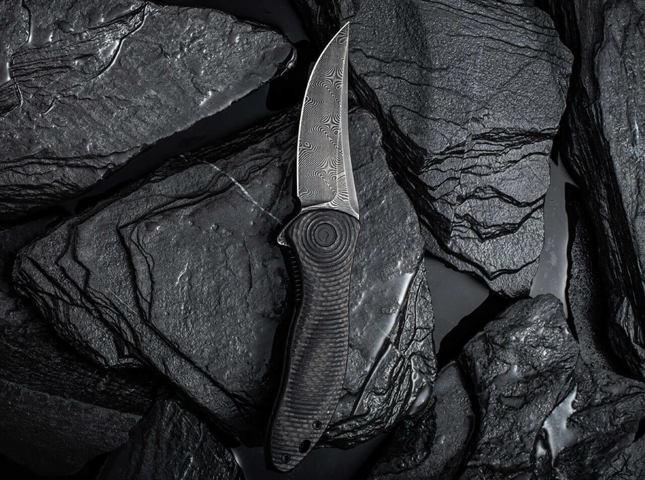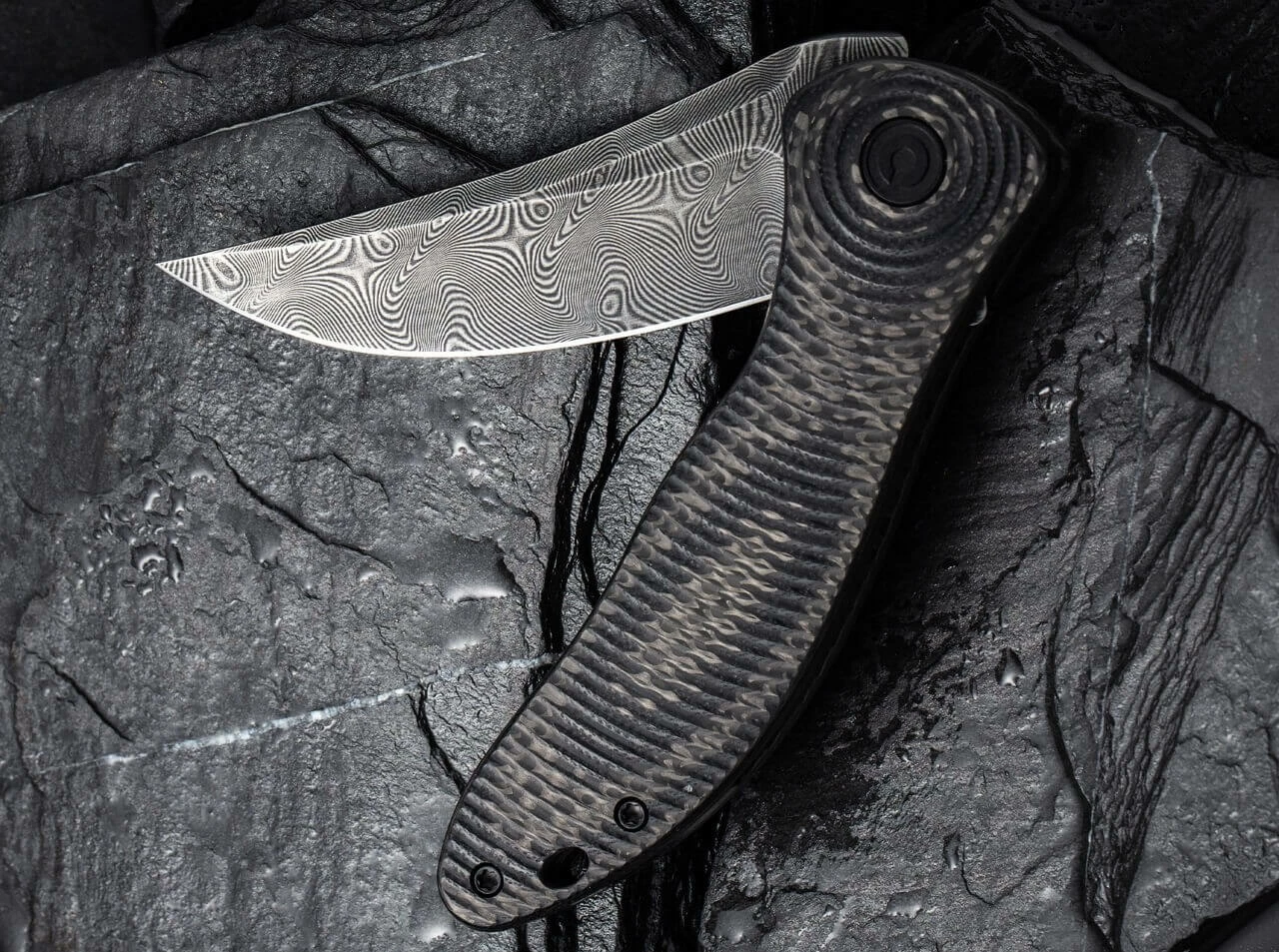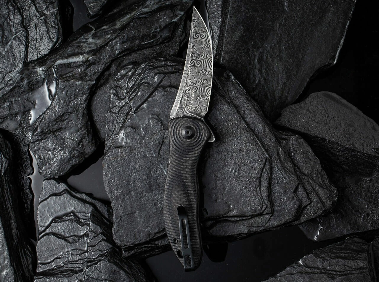 Synergy 3 Damascus G10 CF Black Trailing Point