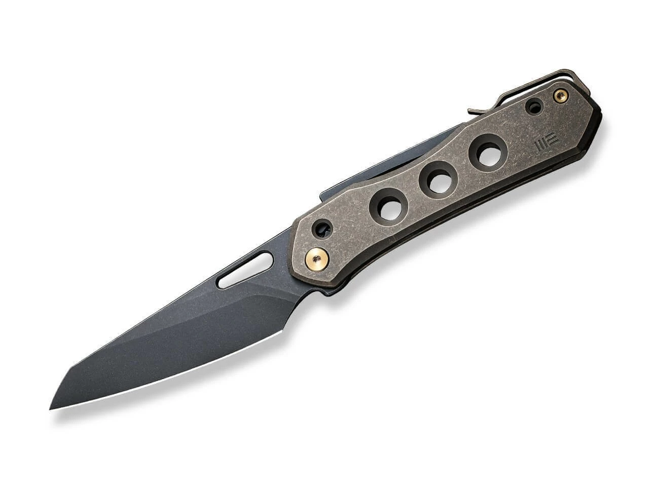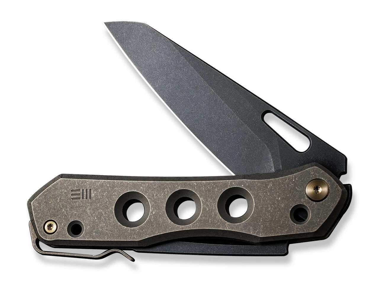 Das Vision R entstand aus einer visionären Idee von We Knife und Snecx Tan heraus, die nun stahlgewordene Realität geworden ist. Das avantgardistische EDC Messer ist mit einer kugelgelagerten Reverse Tanto Klinge aus pulvermetallurgischem CPM-20CV ausgestattet, die über hervorragende Schneidfähigkeiten verfügt. Neben den gewichtsreduzierenden Löchern im bronzefarbenen Titangriff setzt die großzügige Daumenöffnung die Erscheinung des futuristischen Messers stimmig fort. Gesichert wird die Klinge durch den Superlock Mechanismus, der beim Zurückziehen des Hebels am Klingenrücken das Messer wieder entriegelt. Mit Tip-Up Clip.