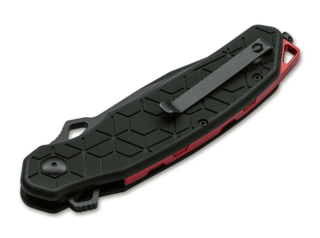Ihre modernen Entwürfe vereinen ihre Erfahrungen aus all diesen Bereichen und machen das Yokai zu einem absoluten Ausnahmemesser. Die modifizierte Tanto-Klinge aus D2 ist mit einer widerstandsfähigen schwarzen Beschichtung versehen ist, wird per Flipper geöffnet und von einem stabilen Linerlock zuverlässig gesichert. Die in einem modernen Wabenmuster texturierten Griffschalen liegen auch bei schlechten Witterungsbedingten optimal in der Hand, zudem sorgen die geriffelte Daumenrampe und die ergonomische Zeigefingermulde für zusätzlichen Grip. Der rote Spacer aus Aluminium sorgt für einen farblichen Akzent. Mit Fangriemenöse, Glasbrecher und praktischem Clip (tip-up/r). Lieferung in einem hochwertigen Nylon-Etui zur Aufbewahrung.
