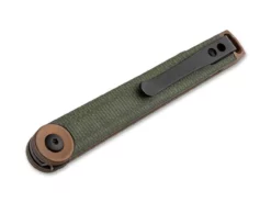Das elegante Böker Plus Zenshin erinnert an die weltweit bekannten Higonokami Taschenmesser, die bereits seit 1896 in der japanischen Stadt Miki gefertigt werden. Anders als bei seinen historischen Vorbildern besteht der Griffkörper des Gentlemanmessers allerdings nicht aus einem einzigen Stück gefaltetem Metall, sondern aus flachen Messing-Griffschalen, die mit einem robusten Stonewash-Finish versehen sind. Die flach bauende Konstruktion verzichtet dabei auf zusätzliche Liner und liegt angenehm in der Hand. Die Slipjoint-Klinge aus 440C ist mit einem aufwendigen Two-Tone-Finish und einem Flachschliff versehen. Sie wird zweihändig geöffnet und verriegelt nicht. Mit Fangriemenöse.
